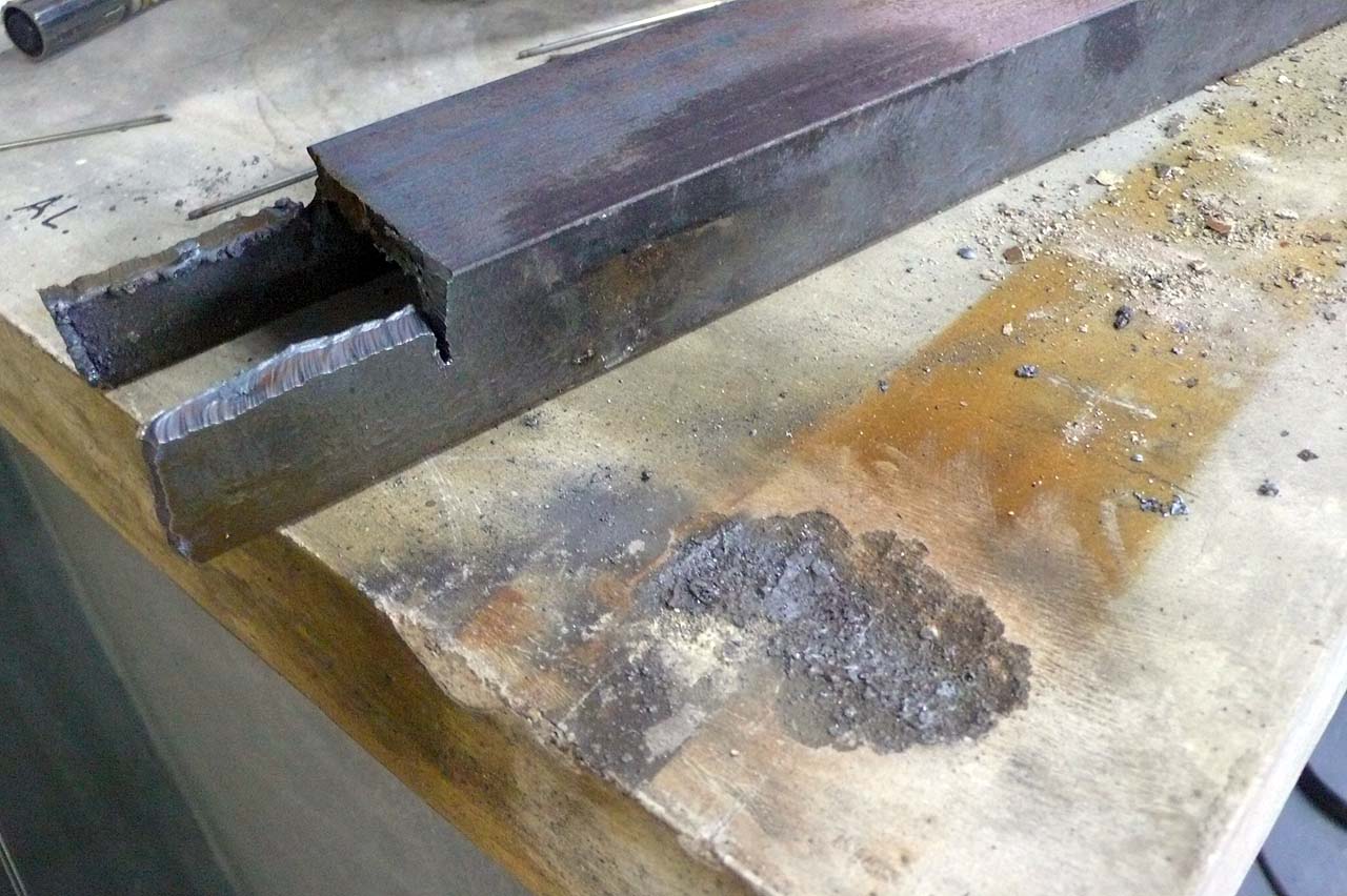 In the process, I learned something not to do with the plasma cutter. I laid the C-channel on a concrete table for cutting, and the plasma stream went straight through a quarter inch of steel and seriously eroded the concrete. Hard to believe this took only seconds to happen!