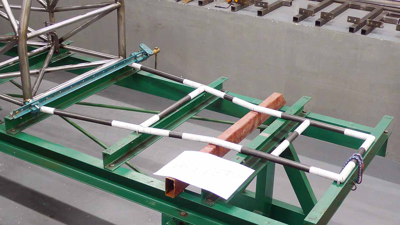 P1090610 Published March 8, 2012 at 1280 × 720 in Building the Frame: Roll Hoop to Tail ← Previous Next → Test fitting the rear beltline tubes. Chassis table has pins to locate these tubes, too. Formula 1000 tube frame fabrication, rear subframe beltline test fitting