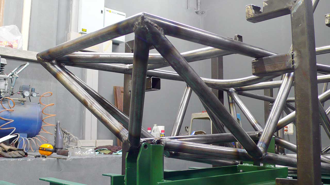 P1090652 Published March 8, 2012 at 1280 × 720 in Building the Frame: Roll Hoop to Tail ← Previous Next → K-L diagonals secure the rear of the rear keel to the beltline. This is the back end of the frame.