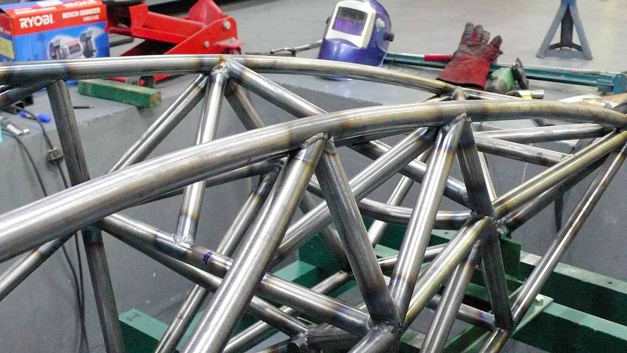 P1090695 Published March 8, 2012 at 1280 × 720 in Building the Frame: Roll Hoop to Tail ← Previous H-J inner diagonals support the rear engine mounts.