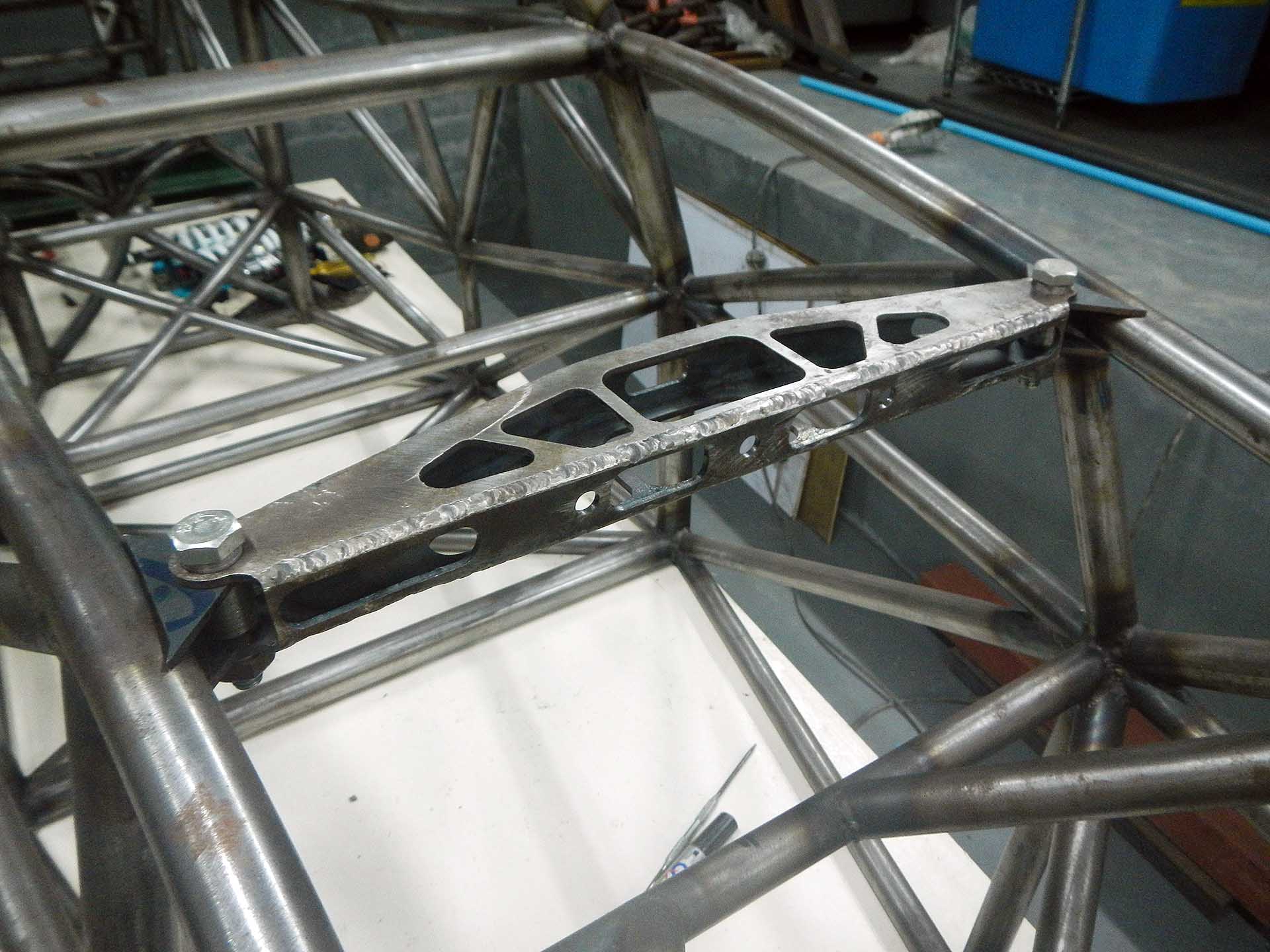 DSCN1795 Published January 12, 2014 at 1920 × 1440 in First Laser-Cut Parts ← Previous Next → Rear shock mount crossmember in place. Removable for engine installation. rear shock mount crossmember for formula 1000 race car tube frame