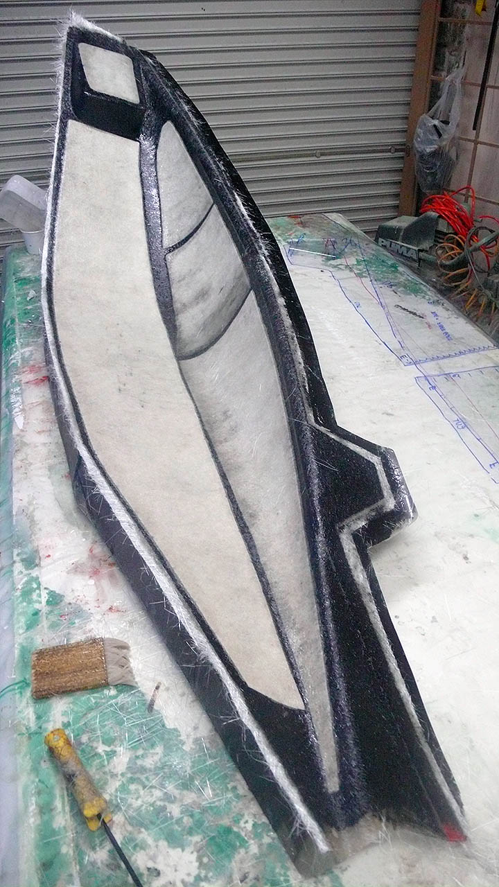 P1120296 Published January 10, 2014 at 720 × 1280 in Part Eleventy-seven, In Which We Finally Lay Up a Body ← Previous Next → Sidepod after second layup, showing coremat. Formula 1000 race car fiberglass body panel layup fabrication molding
