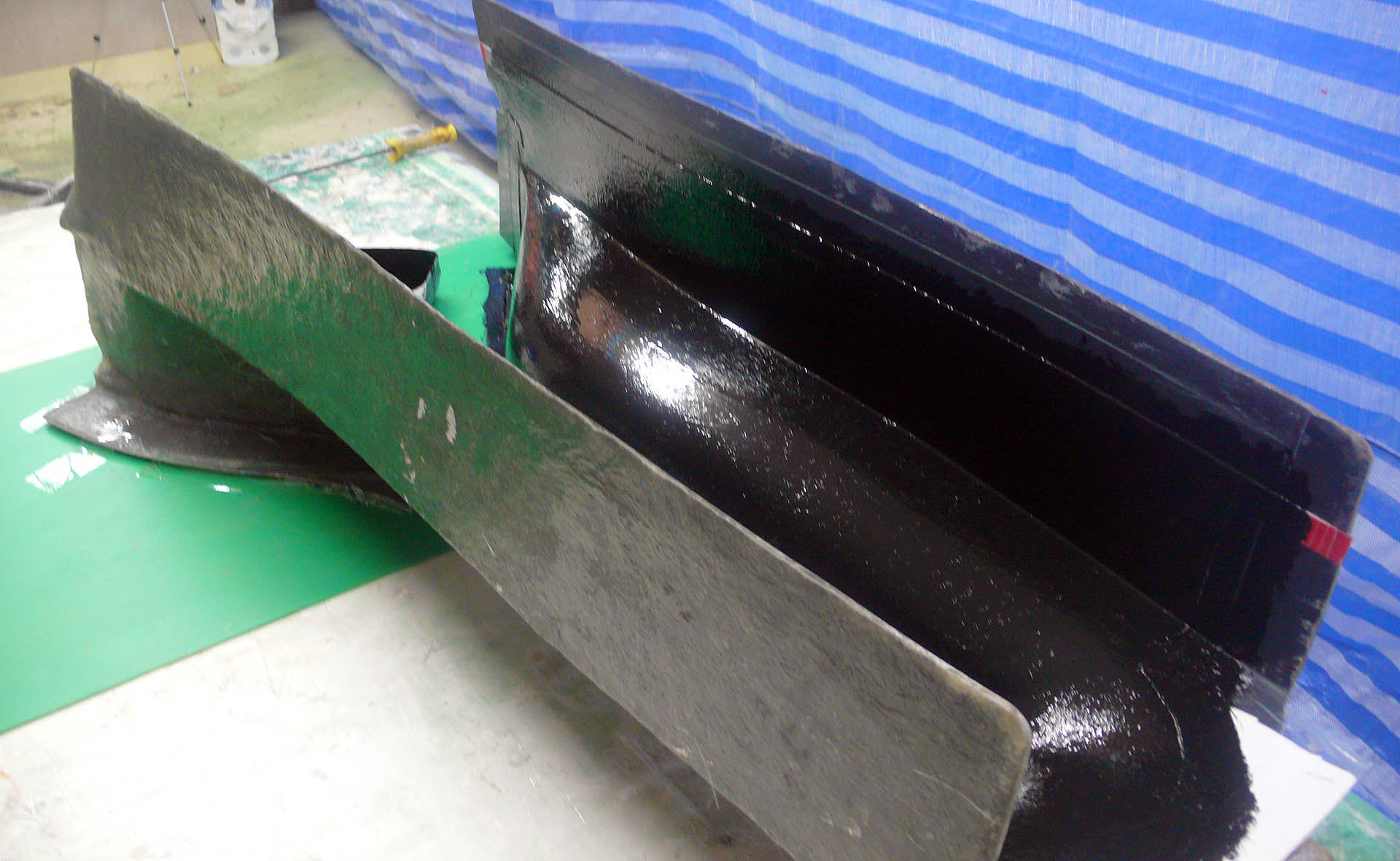 P1120298 Published January 10, 2014 at 1920 × 1181 in Part Eleventy-seven, In Which We Finally Lay Up a Body ← Previous Next → Keel mold with gelcoat applied. Formula 1000 race car fiberglass body panel layup fabrication molding