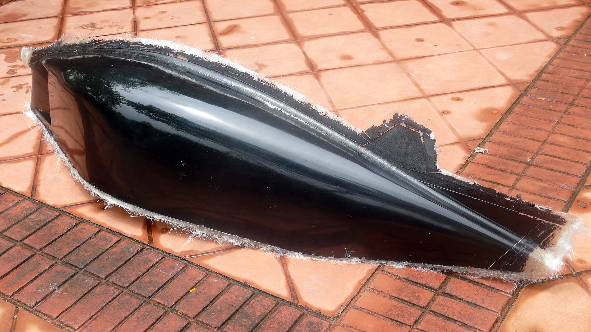 P1120304 Published January 10, 2014 at 1920 × 1080 in Part Eleventy-seven, In Which We Finally Lay Up a Body ← Previous Next → Sidepod just released from the mold. Formula 1000 race car fiberglass body panel layup fabrication molding