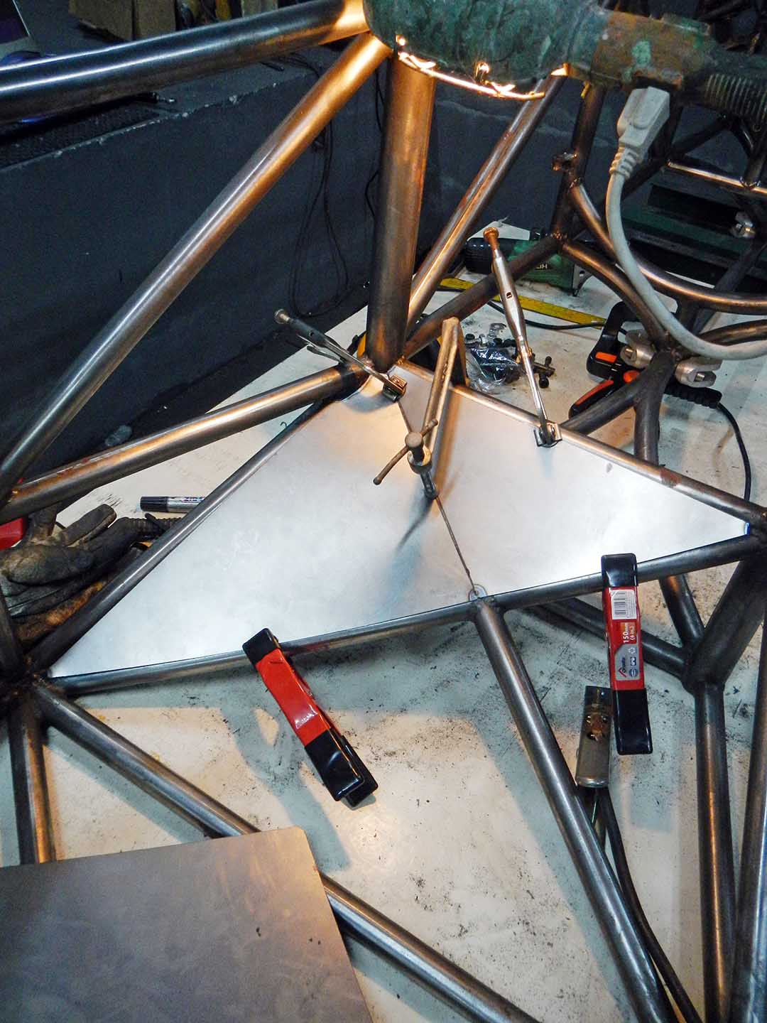 DSCN2248 Published February 2, 2014 at 1080 × 1440 in Fabricating the Seat Bottom Next → First two pieces clamped in place and ready to tack weld fabricating the seat bottom for a formula 1000 race car from laser cut steel pieces
