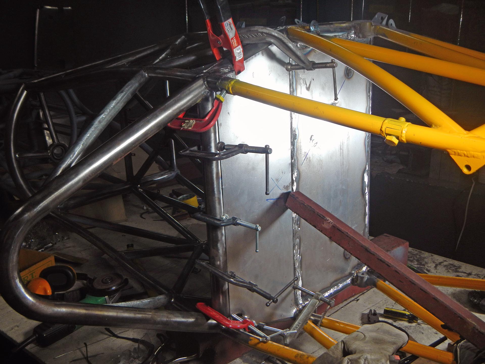 DSCN3160 Published November 16, 2014 at 1920 × 1440 in Building the Firewall ← Previous Next → Upper half clamped in place for welding Fabricating the firewall for a formula 1000 race car; upper half clamped for welding