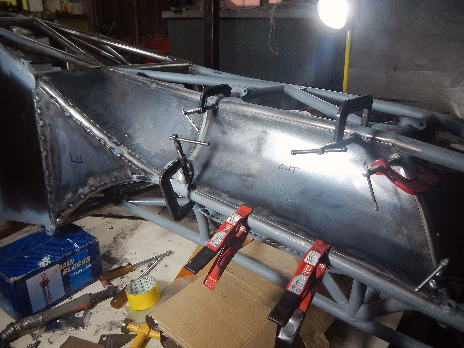 DSCN3287 Published November 17, 2014 at 1920 × 1440 in Building the Floor Pan, Floorpan, Belly Pan, Whatever ← Previous Next → RF Keel Fabricating a Formula 1000 race car floorpan with front keel