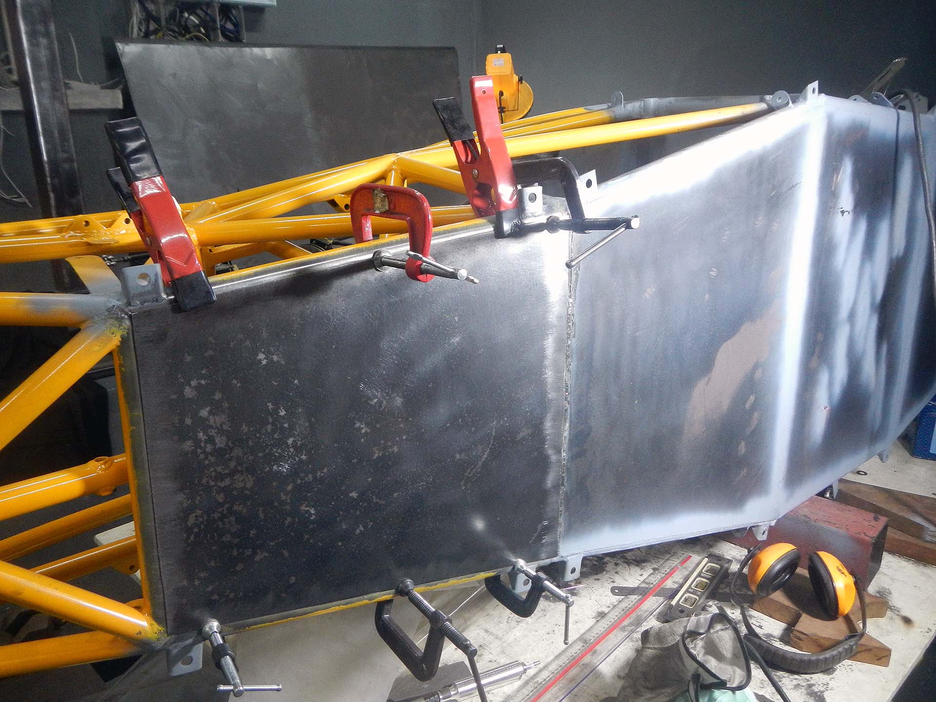 DSCN3288 Published November 17, 2014 at 1920 × 1440 in Building the Floor Pan, Floorpan, Belly Pan, Whatever ← Previous Next → Differential cover clamped in place Fabricating a Formula 1000 race car floorpan with front keel; differential cover clamped