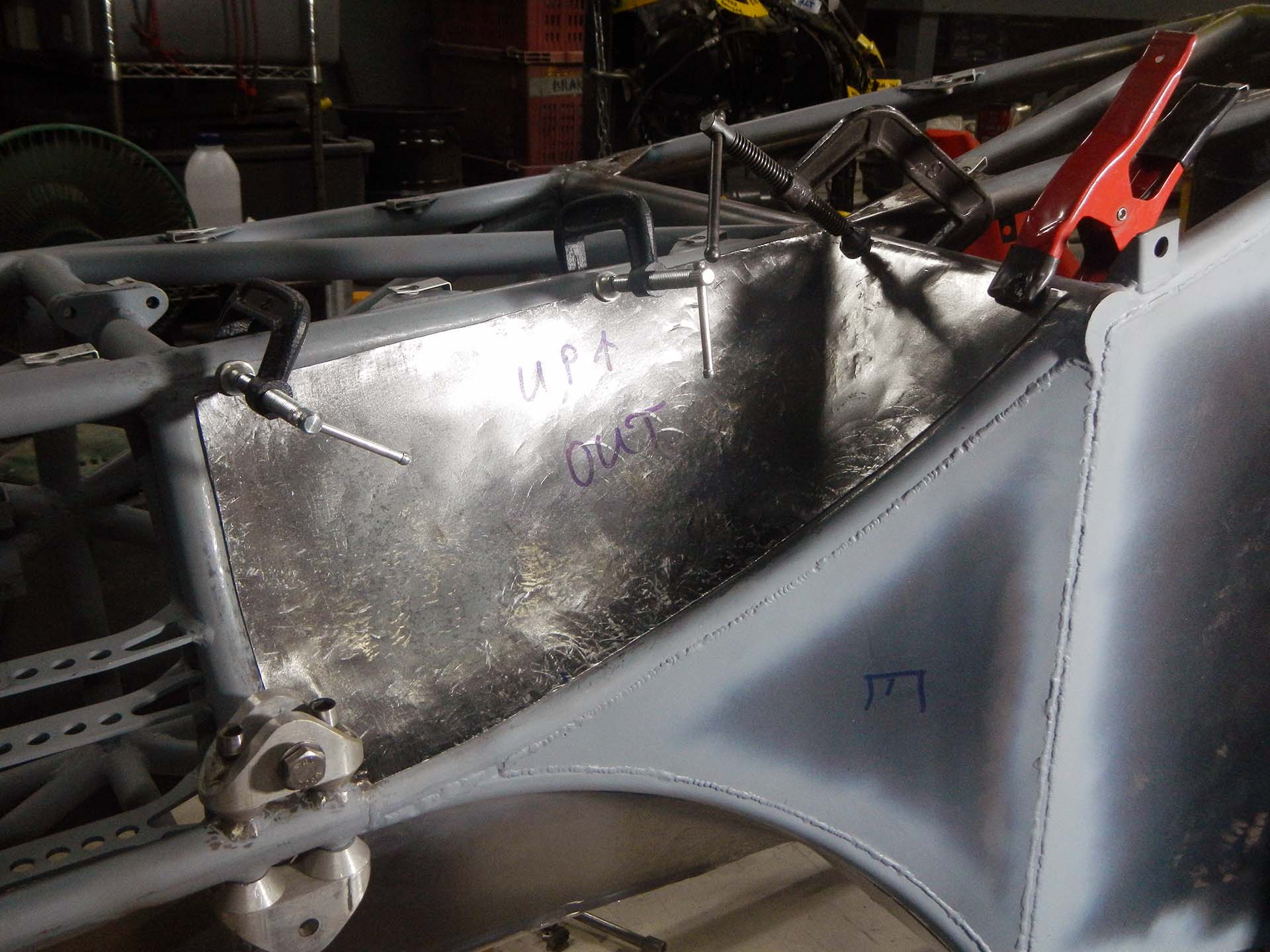 DSCN3295 Published November 17, 2014 at 1920 × 1440 in Building the Floor Pan, Floorpan, Belly Pan, Whatever ← Previous Next → LF Keel transition pounded into submission Fabricating a Formula 1000 race car floorpan with front keel; compound curve