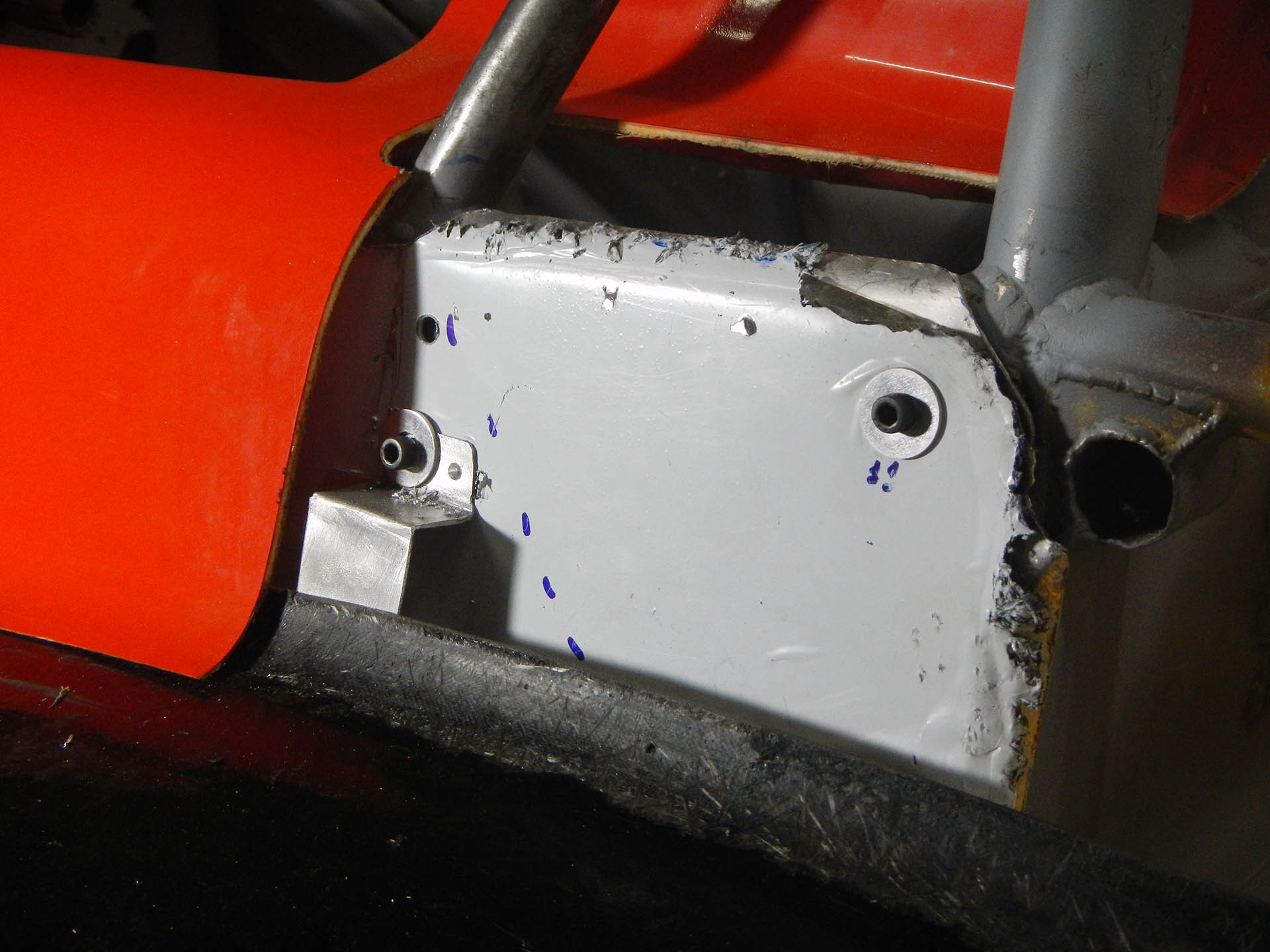 DSCN3439 Published November 18, 2014 at 1920 × 1440 in Attaching the Body ← Previous Next → LF engine cover mount in place; side panel to be cut here for fuel filler Mounting the body on a formula 1000 race car; provision for fuel filler