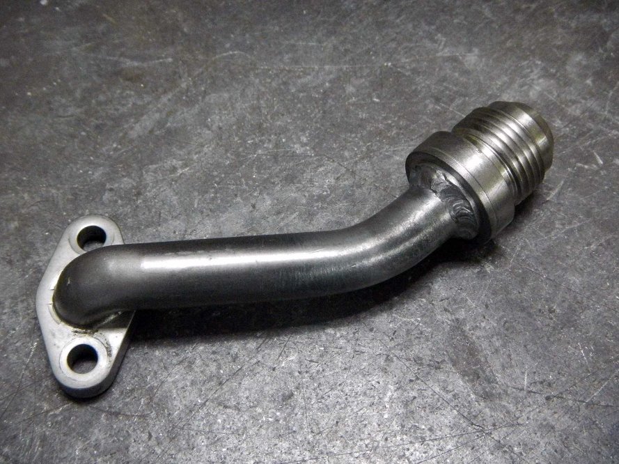 DSCN3984 Published August 14, 2015 at 1920 × 1440 in Plumbing the Oil Cooler ← Previous Next → AN-10 adapter welded to right side oil line fitting. Suzuki GSX-R1000 pressurized oil line adapted to AN-10 hose.