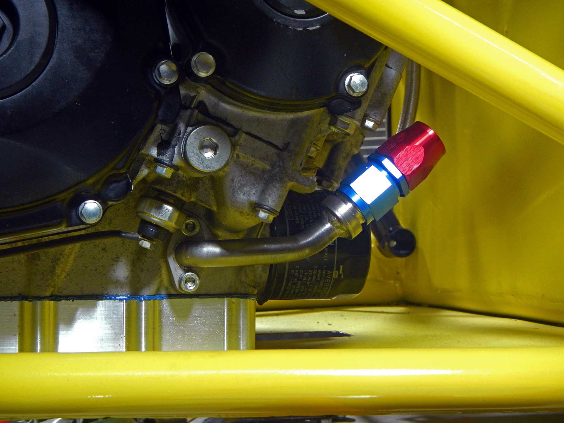 DSCN3990 Published August 14, 2015 at 1920 × 1440 in Plumbing the Oil Cooler ← Previous Next → Test fitting the right side pressurized oil line with AN-10 fittings Suzuki GSX-R1000 oil pressure line closeup as adapted to formula 1000 race car